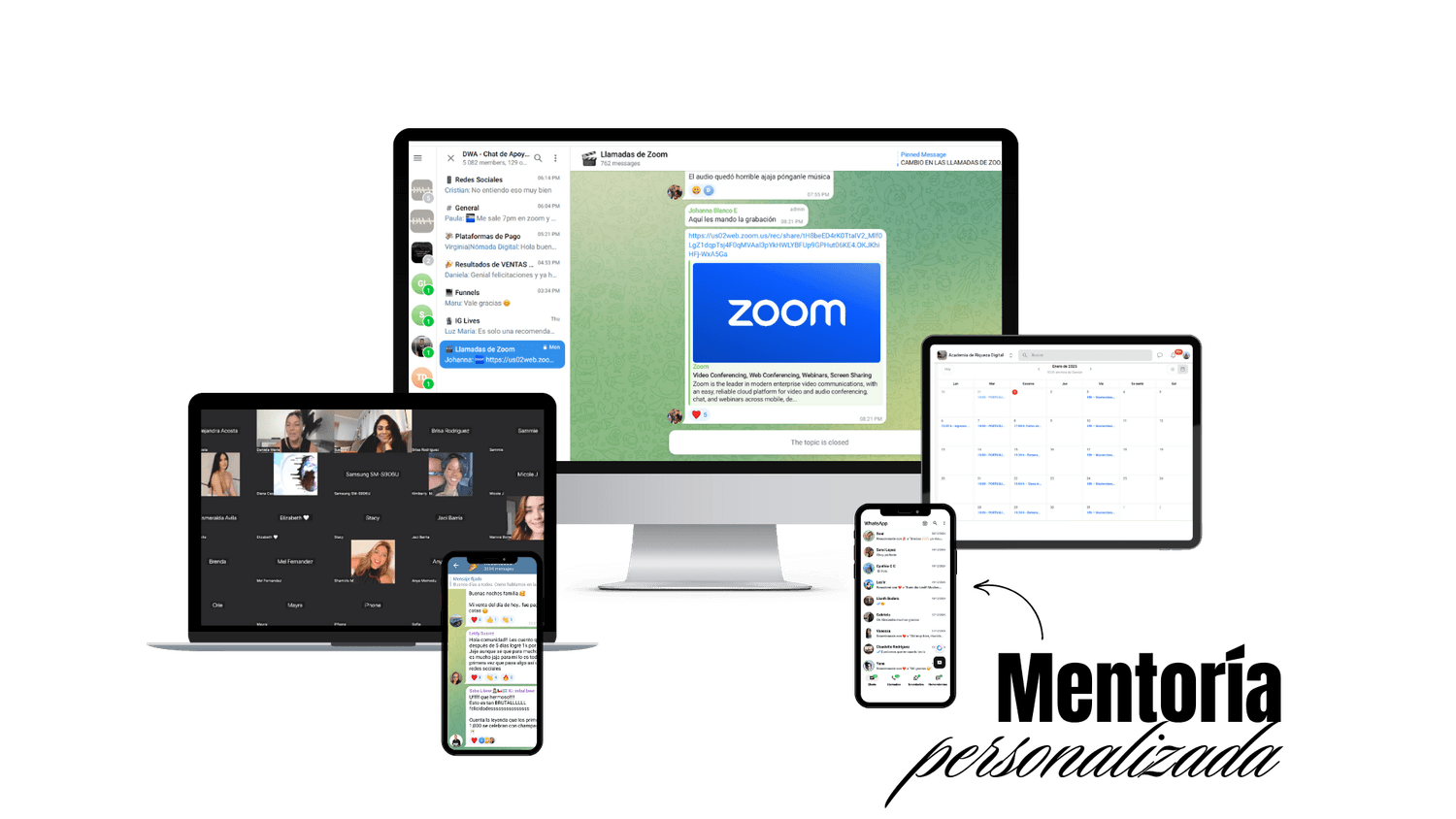 Acceso a una comunidad privada de Telegram para apoyo diario y llamadas por Zoom semanales.